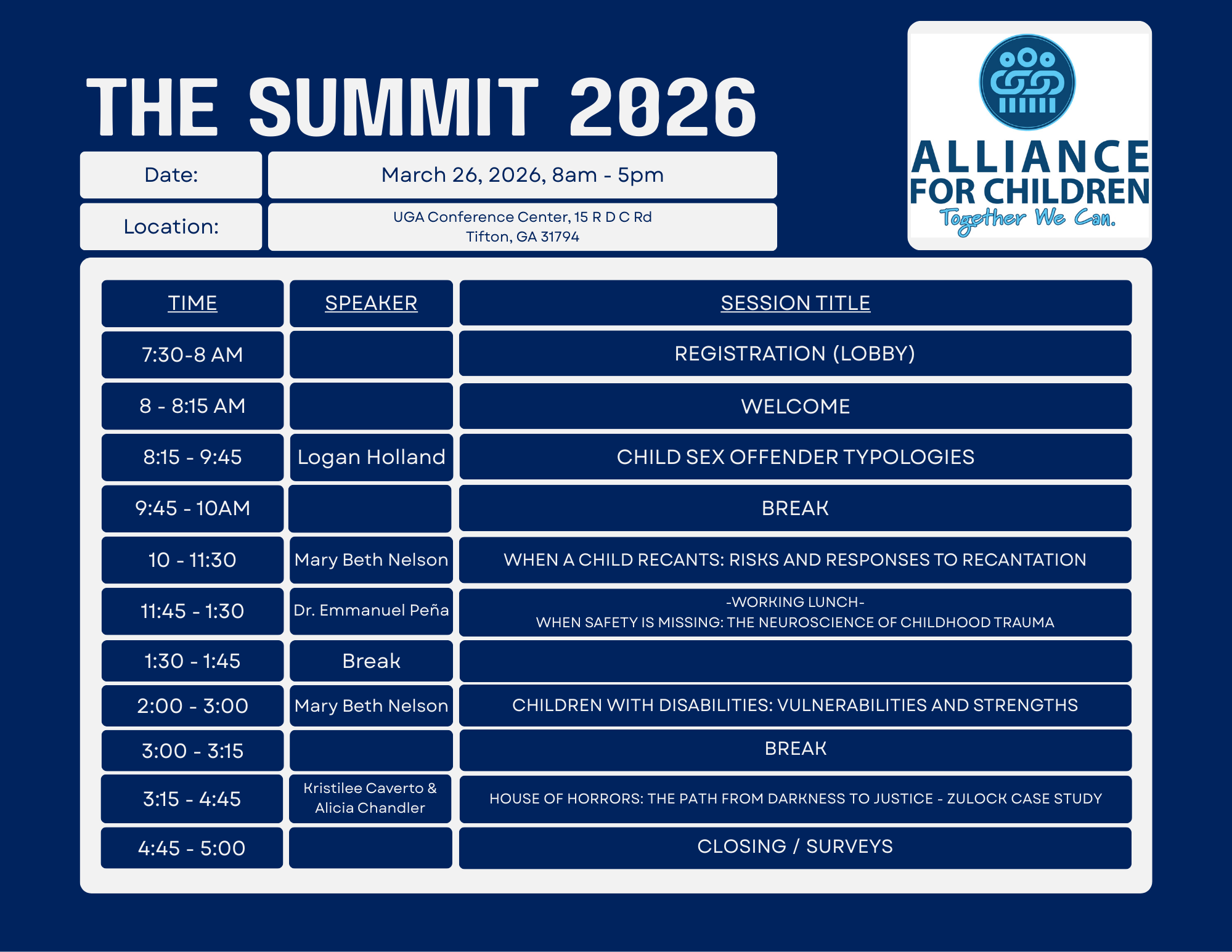 Tickets are available for purchase beginning on January 1, 2026 at www.TheSummit2026.eventbrite.com.